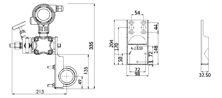 | 2、重量净重:约4kg(无安装支架,过程连接配件) |