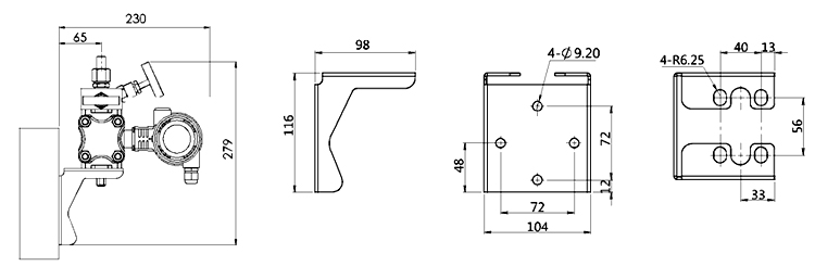 | 2、板装弯支架(B2)安装尺寸图(单位:mm) |