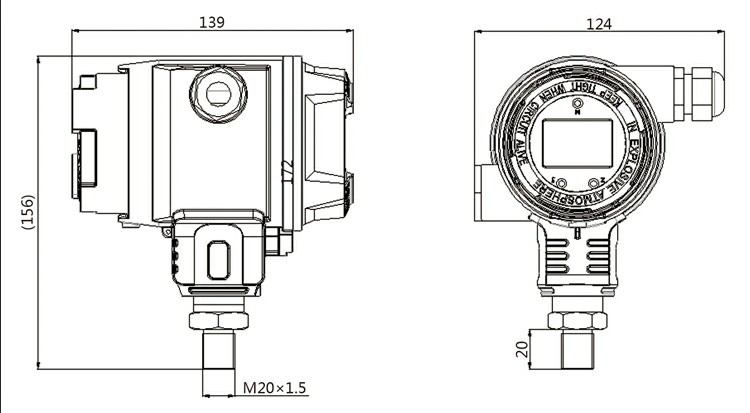 隔离膜片316不锈钢接触介质连接件不锈钢O型环丁晴橡胶外壳铝合金外壳喷涂环氧树脂过程连接方式1/2NPT外螺纹 M20×1.5外螺纹电气连接电缆孔为Φ8重量约1kg