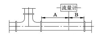 1.流量计上游有90°弯头 保证流量计的前直管段A≥7D,后直管段B≥3D |