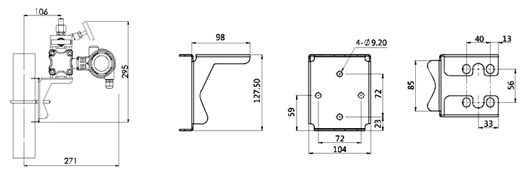 | 2、板装弯支架(B2)安装尺寸图(单位:mm) |
