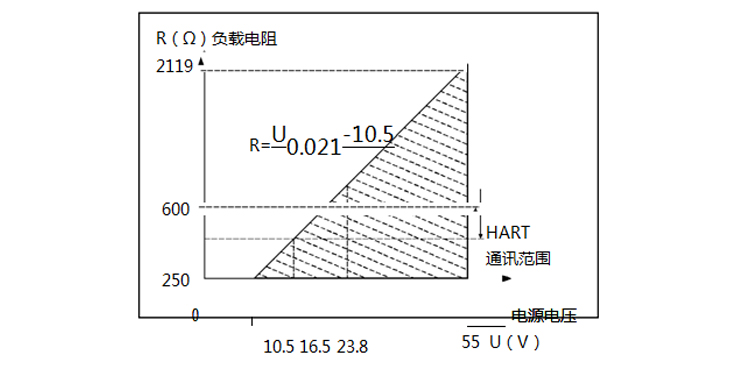 | 项目操作条件标准型/隔爆型10.5-55VDCHART通讯协议16.5-55VDC ,通讯时负载电阻250Ω负载电阻0-2119Ω为工作状态,250-600ΩHART通讯传输距离<1000米耗电量≤500mW@24VDC,20.8mA |