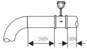 上、下游配管应与流量仪表表体内径同心,它们之间的不同轴度应小于0.05Db