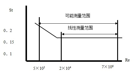 由此可见,通过测量卡曼涡街分离频率便可算出瞬时流量。其中,斯特罗哈尔数(St)是无因次未知数,